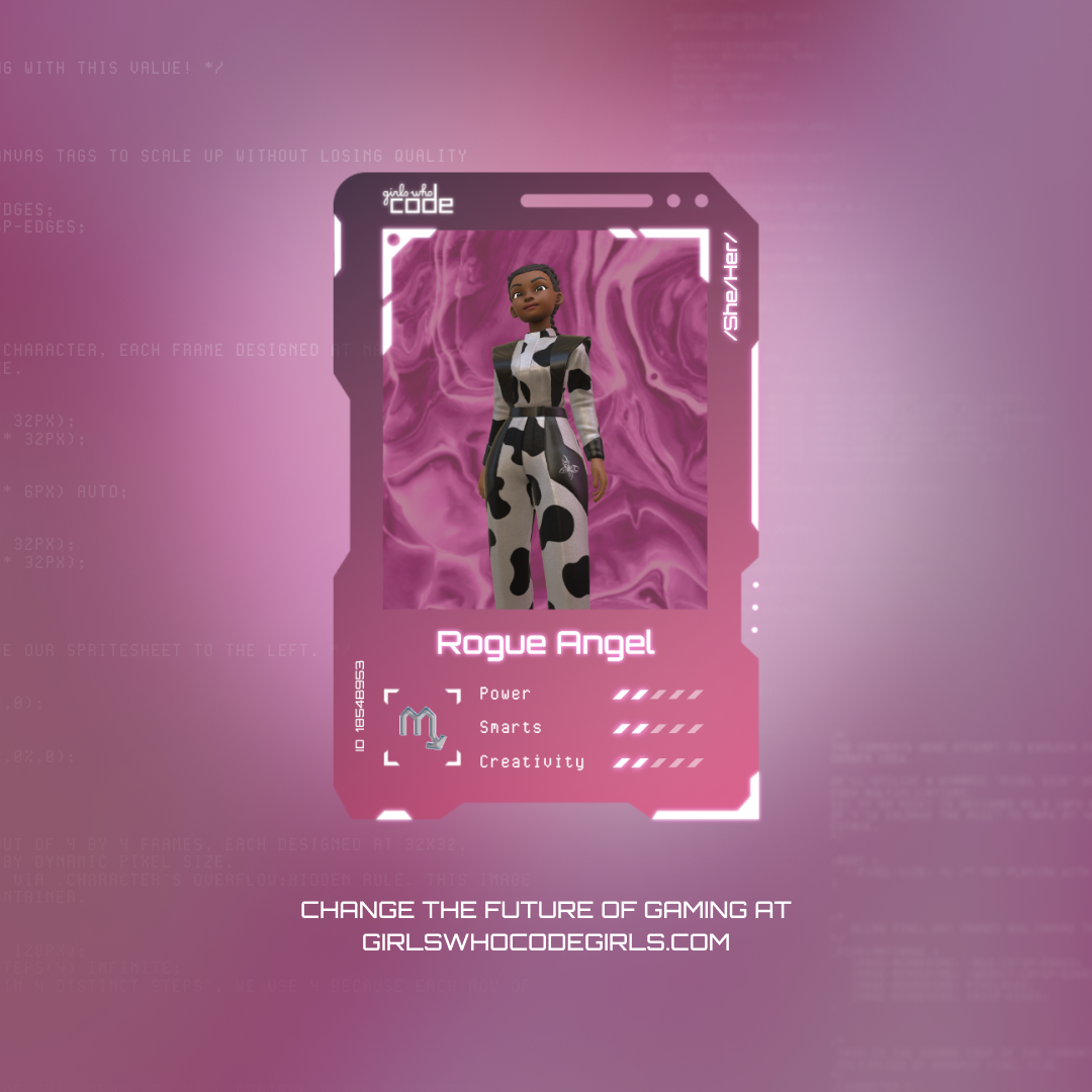 Girls Who Code Girls is a coding experience where girls and non-binary individuals can code their own video game characters, disrupting the overly-sexualized characters that are designed by men, for men.